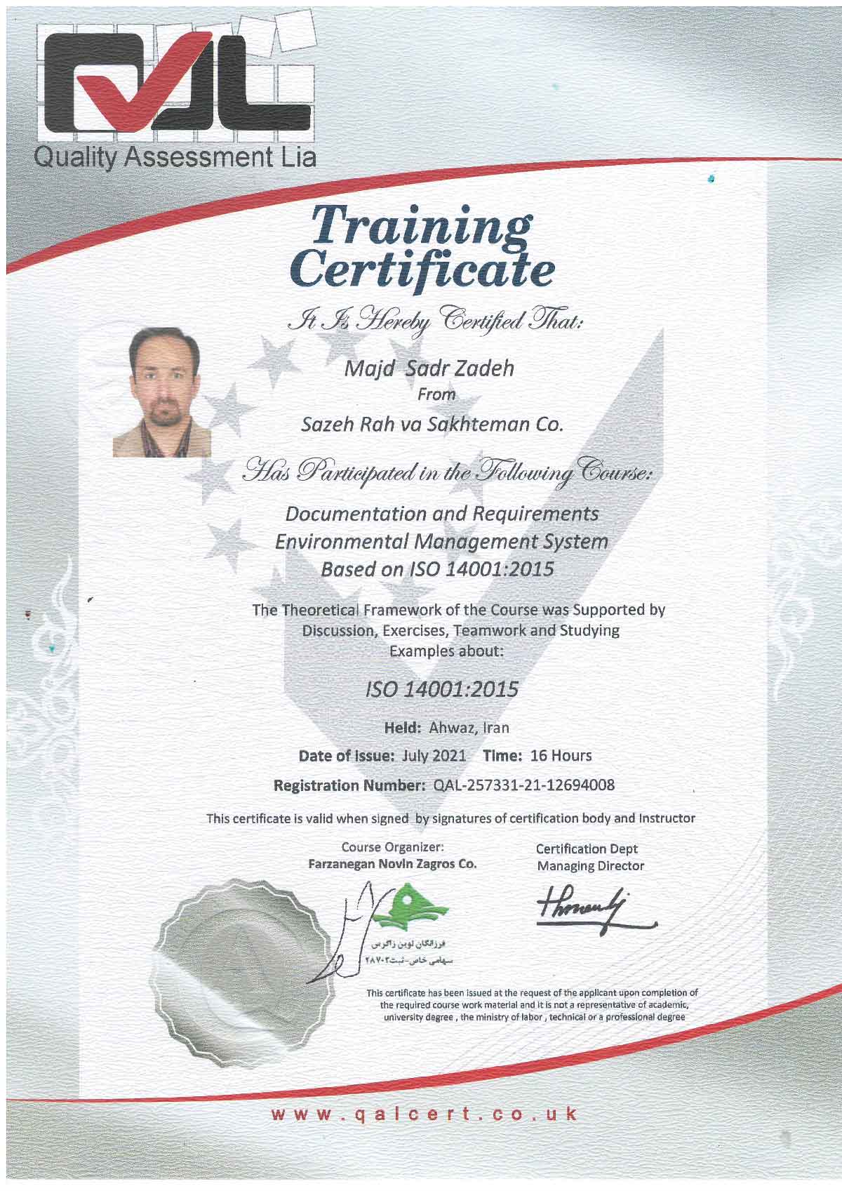 ISO 14001 گواهینامه فرزانگان نوین زاگرس