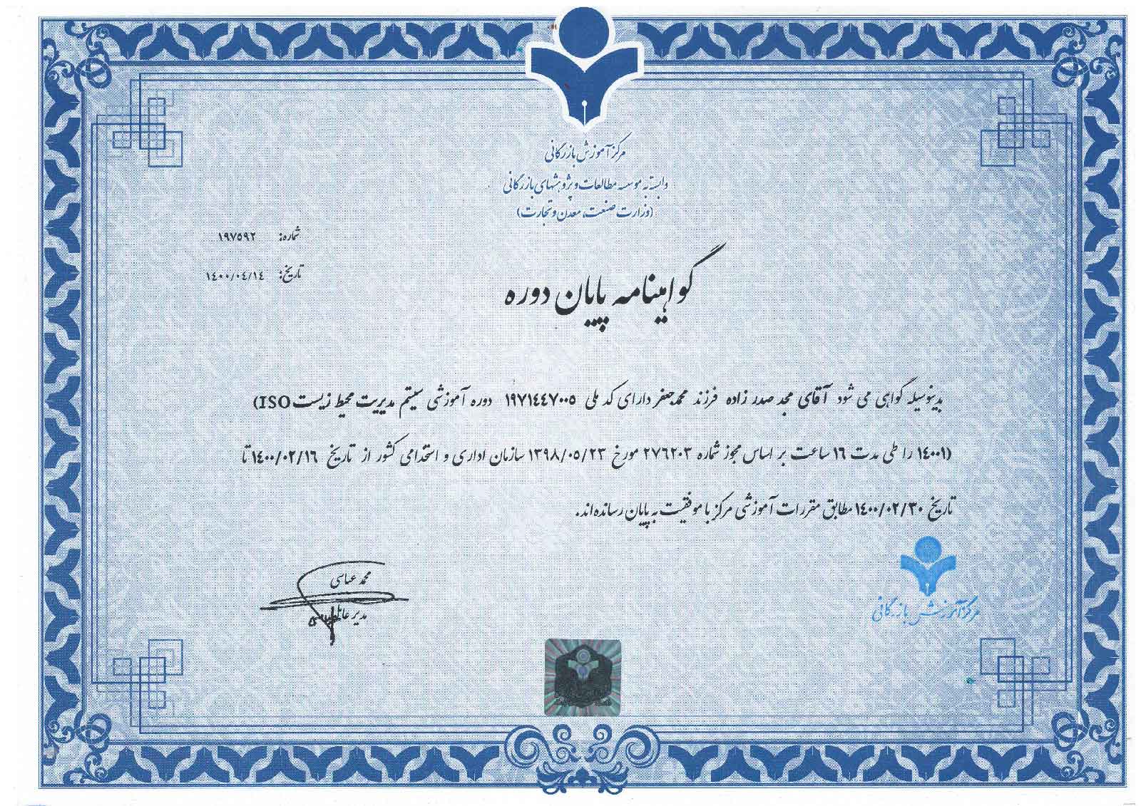 ISO 14001 گواهینامه مرکز آموزش وزارت صنعت، معدن و تجارت