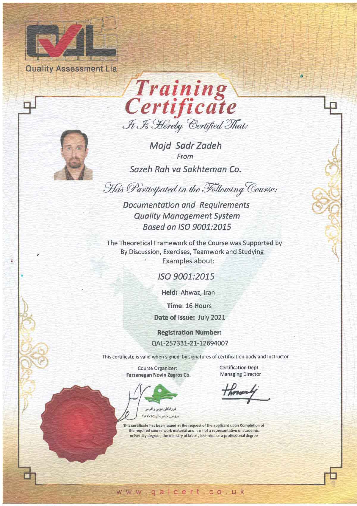 ISO 9001 گواهینامه فرزانگان نوین زاگرس