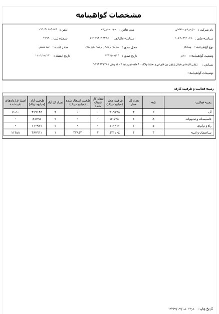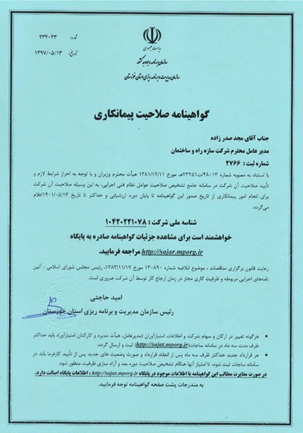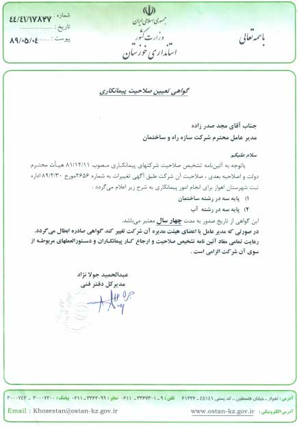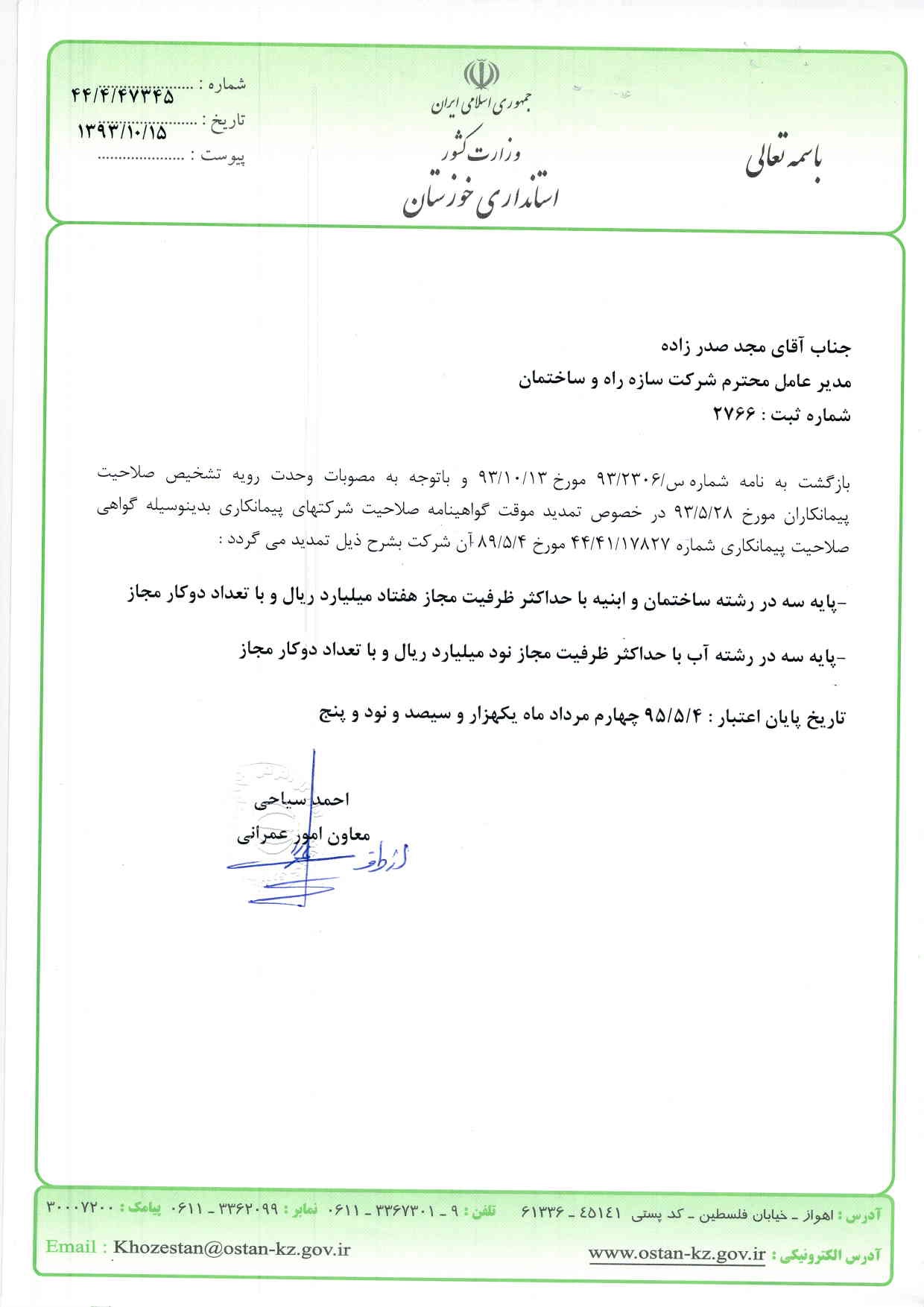 گواهی صلاحیت پیماکاری وزارت کشور، استانداری خوزستان - 1393