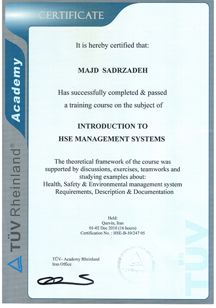 HSE گواهی وزارت تعاون، کار و رفاه اجتماعی